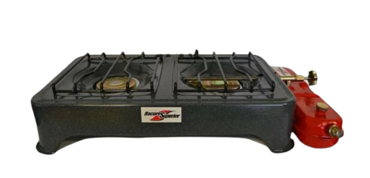 Estufa portátil de dos quemadores, diseñada para funcionar con gasolina, ideal para uso en exteriores, campamentos, trabajos en campo o zonas sin acceso a gas domiciliario. Tipo de combustible: Gasolina
